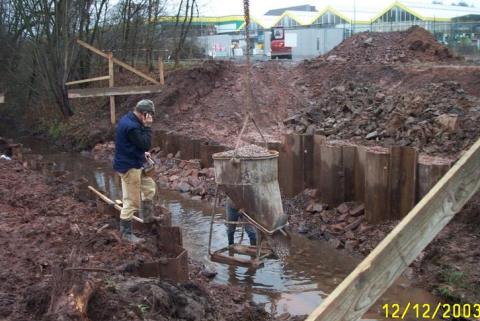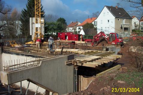 hier wieder gearbeitet. Die beiden Widerlager sind schon betoniert und z.Zt.