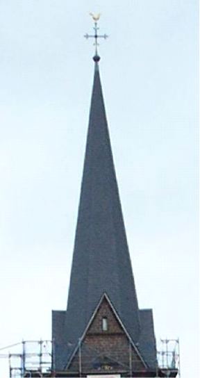 ganz besonders das Turmkreuz erneuert und der Hahn frisch vergoldet.